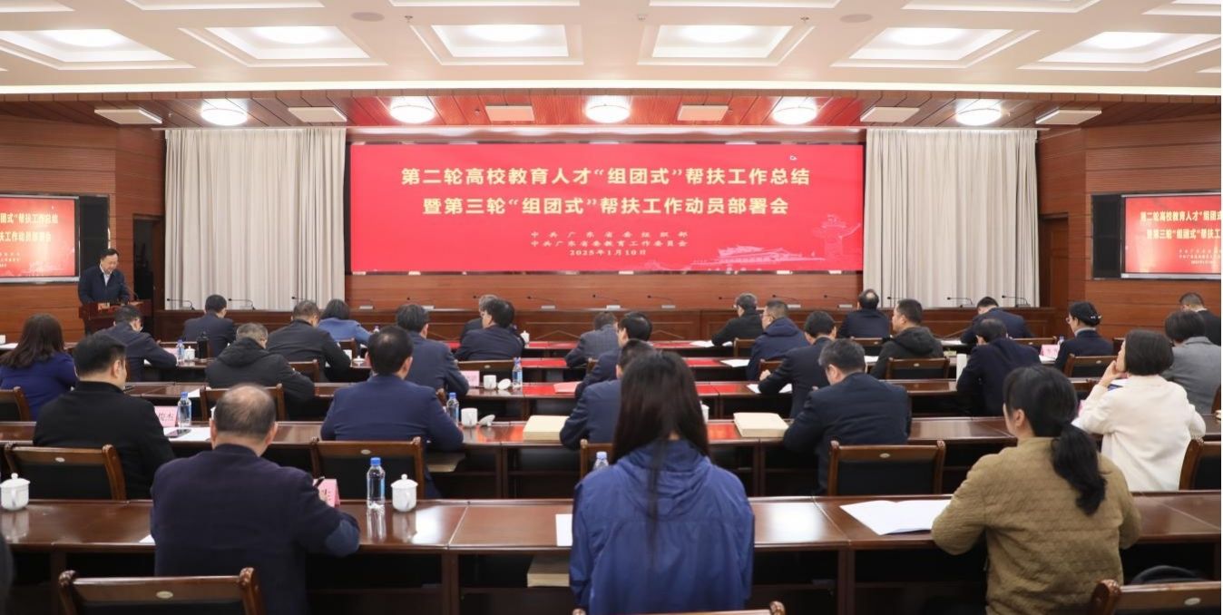 本网讯 1月10日,广东省第二轮高校教育人才“组团式”帮扶工作总结暨第三轮“组团式”帮扶工作动员部署会在省教育厅召开。省委教育工委委员,省教育厅党组成员、副厅长朱建华出席会议并讲话。我校党委副书记欧洪湛代表受扶高校作经验交流。