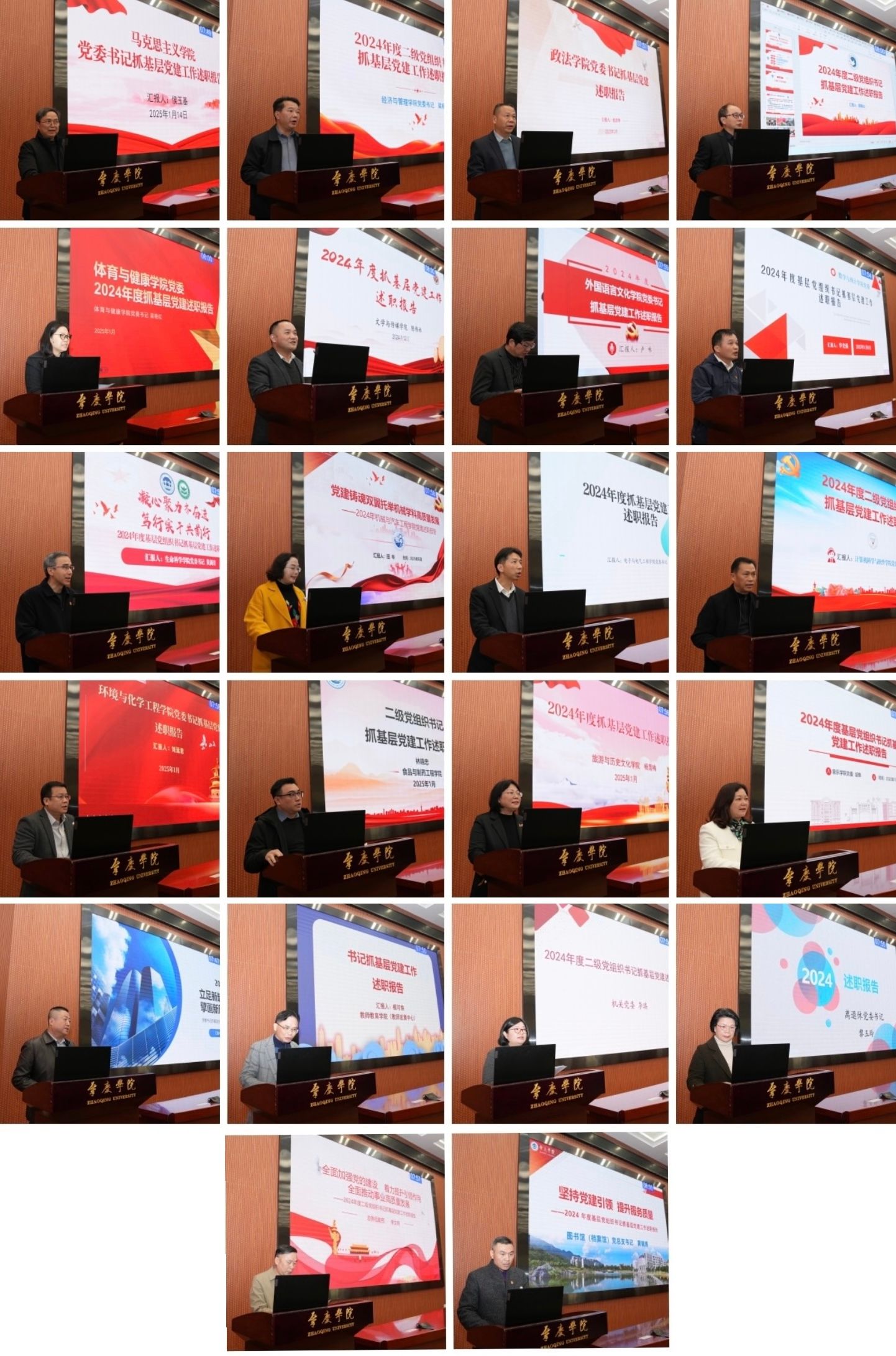 会上,二级党组织书记、二级学院院长、机关和直属单位主要负责人(含主持工作副职)认真对照本单位岗位职责、2024年工作计划和目标任务,围绕学校工作要点和重点工作,结合PPT展示方式,全面汇报了本单位一年来工作完成情况和工作中的亮点、创新点和主要存在问题,并提出了今后努力的方向。