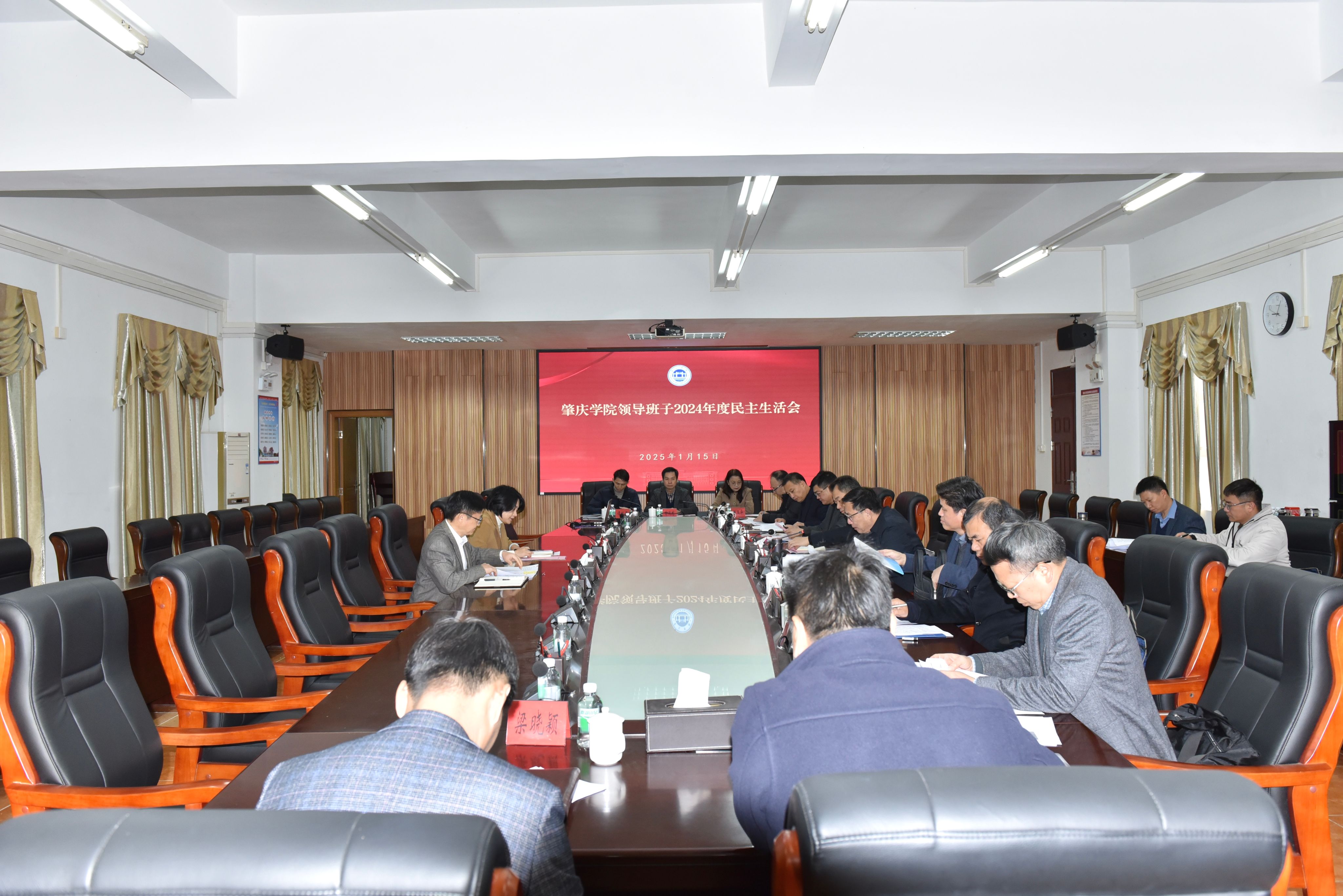 本网讯 根据上级部署要求,1月15日上午,我校召开2024年度领导班子民主生活会。校党委书记谢冠华主持,全体校领导参加,党政办公室、纪检监察室、组织部、宣传统战部、学生工作部(招生与就业指导中心)、人力资源部、审计工作部主要负责人列席会议。肇庆市委教育工委常务副书记、市教育局党组书记、局长谢先群,肇庆市委教育工委高校党建办主任李杰聪到会指导。