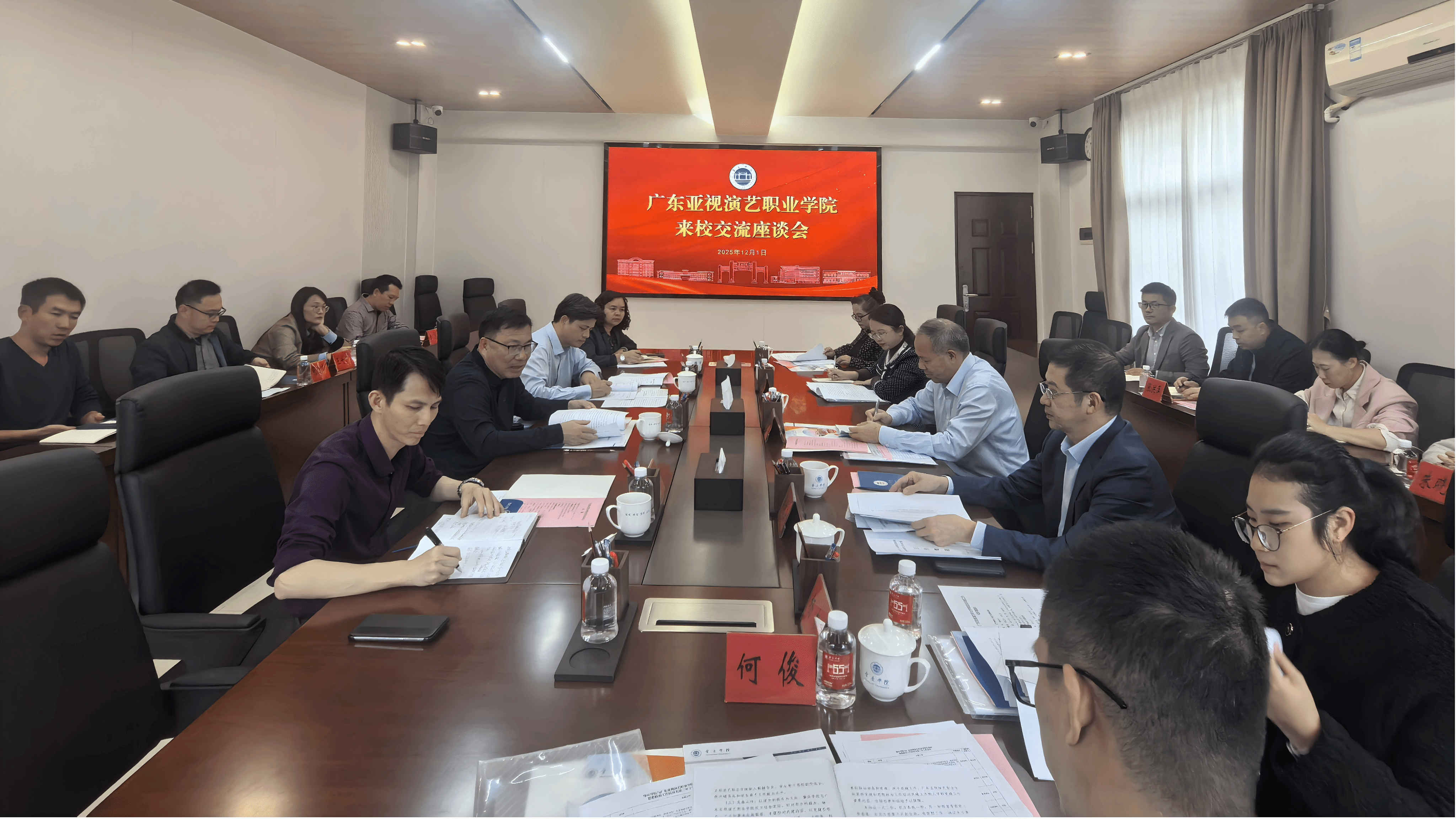 本网讯 12月1日,广东亚视演艺职业学院党委书记、督导专员谭冠中率队到我校开展交流座谈,研究推进党建和思想政治工作结对共建工作。校党委书记谢冠华、党委副书记欧洪湛出席会议,两校结对共建工作团队成员参加座谈。会议由欧洪湛主持。