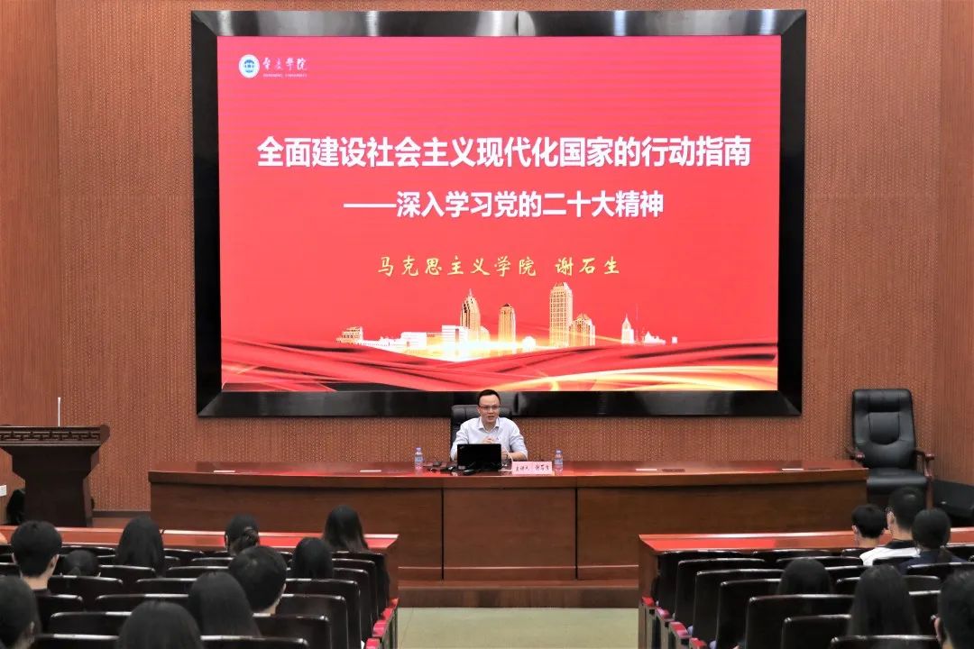 本网讯 近日,“砚园•青马”在学术报告厅开展秋季学期集体备课学习会,并邀请马克思主义学院的谢石生博士作“全面建设社会主义现代化国家的行动指南——深入学习党的二十大精神”的授课,深入学习贯彻党的二十大精神,让青春在新征程的火热实践中绽放绚丽之花。