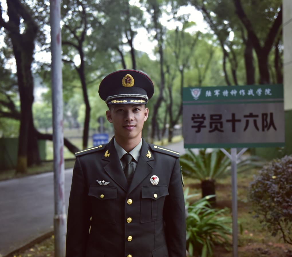 2018年9月入伍,服役于陆军某野战旅侦察营,期间担任武装侦察班狙击步枪手兼副班长。2020年9月退伍复学,2021年考入英国威廉集团官网。“好男儿就是要当兵”,从小这句话就烙在了我的心中,于是我选择报名参军,很荣幸如愿以偿。青春有很多样子,很庆幸我的青春有穿着军装的样子。