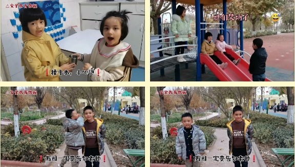 此外,他们还在我拍摄的“幼儿园安全教育”宣传视频中担任主要角色,演戏潜能就此迸发。当他们创作自画像时、给自然角的豆子做观察记录时、给捡来的干枯树枝穿上“花衣裳”时、给班级打击乐队做小指挥时,艺术的小火苗便愈燃愈烈,而火苗将会在他们的成长道路上散发热与光亮,为他们提供精神支持和意想不到的惊喜。