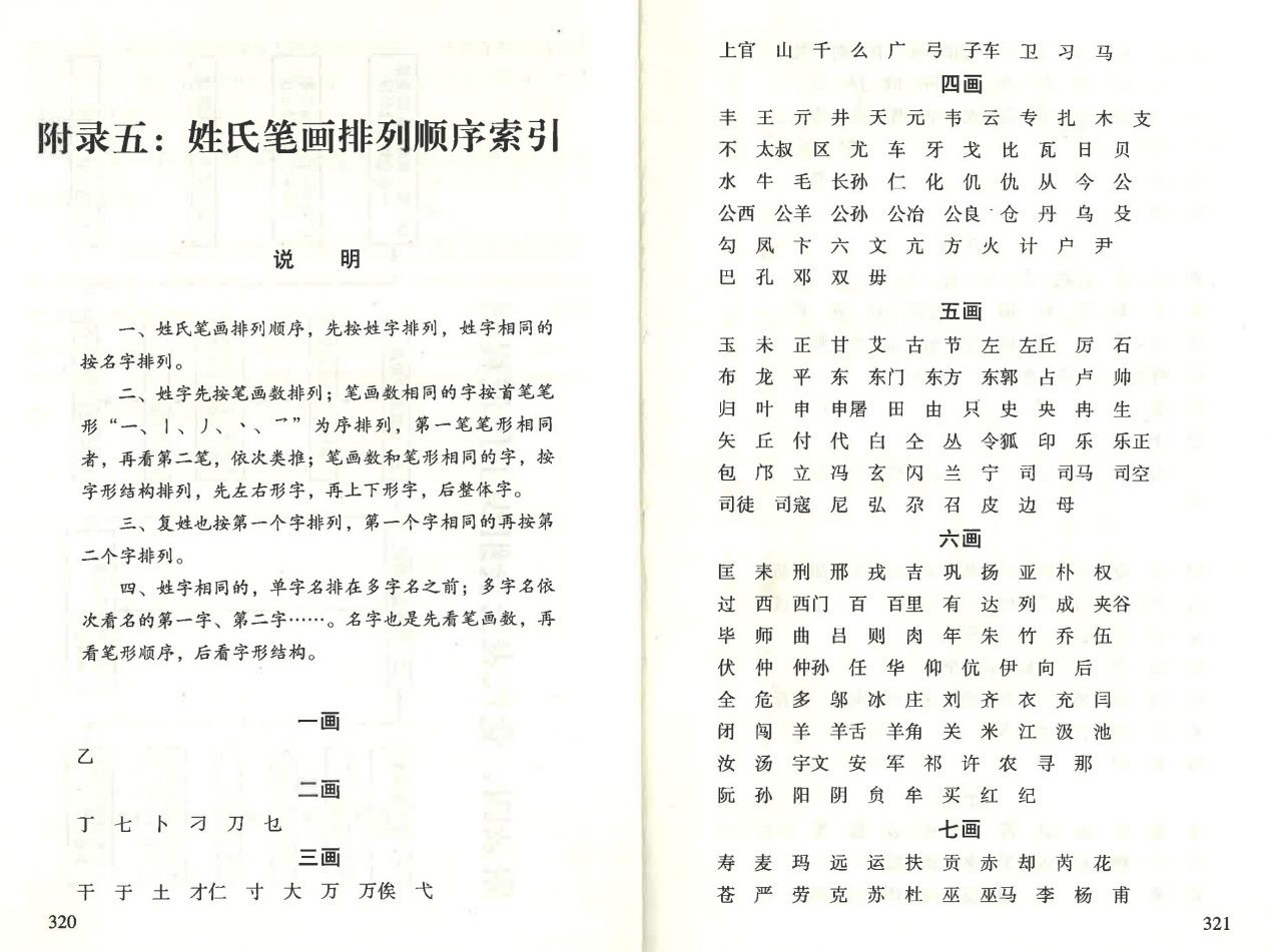 二、姓字先按笔画数排列;笔画数相同的字按首笔笔形“一、丨、丿丶乛”为序排列,第一笔笔形相同者,再看第二笔,依次类推;笔画数和笔形相同的字,按字形结构排列,先左右形字,再上下形字,后整体字。