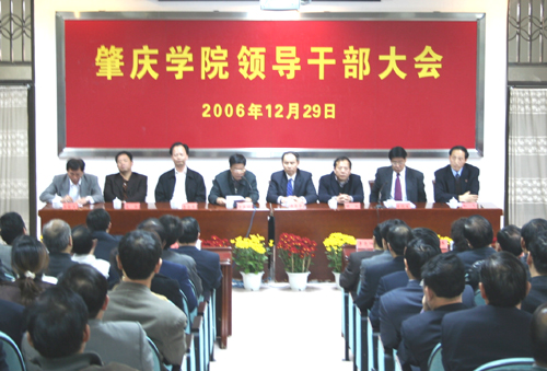 省委组织部副厅级巡视员万东明,省委教育工委副书记谭泽中,肇庆市委常委、组织部部长李水华,云浮市委副书记赖斌,云浮市委常委、组织部部长凌锋,云浮市人民政府副市长李尧坤,省委组织部干部五处副处长刘丽萍,省委教育工委组织干部处副处长黄兆团,肇庆市委组织部副部长梁钧权等领导出席大会。我校领导和中层干部、民主党派负责人及正高职称教师共同出席了大会。大会由陈优生同志主持。