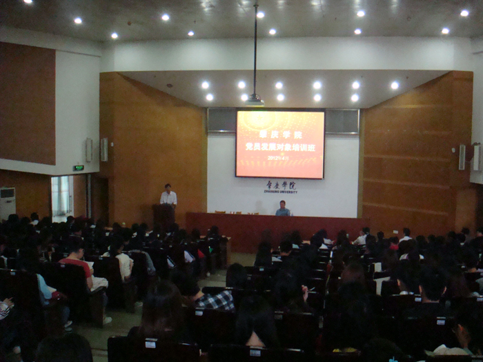 (本网讯 通讯员 欧晓秀)4月21日至23日,我校2012年第一期党员发展对象培训班在学校学术报告厅举行,来自各二级学院及机关单位的1400多名发展对象参加了集中培训。本次培训分三个班分别进行培训,党委副书记叶峥嵘、组织部部长黎强、政法学院党委书记杨迎春教授、组织部副部长欧洪湛等分别作了专题辅导报告。