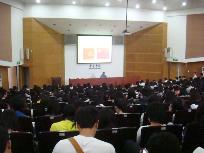 叶峥嵘作了题为《坚持党员标准,发挥先锋模范作用》专题讲座。他认真分析了当前国内外的新形势及我国目前教育发展情况,结合高校青年学生党员特点,要求广大青年学好专业知识、练好服务群众、服务社会的本领,积极参加 “三爱一奉献”创先争优主题教育实践活动。叶书记还要求发展同学们围绕“正、献、勤、阔、远、严”六个字下功夫,锻炼提高作模范。叶峥嵘在授课过程中,运用了大量鲜活的事例、丰富的网络流行语,课堂气氛活跃,互动性强。