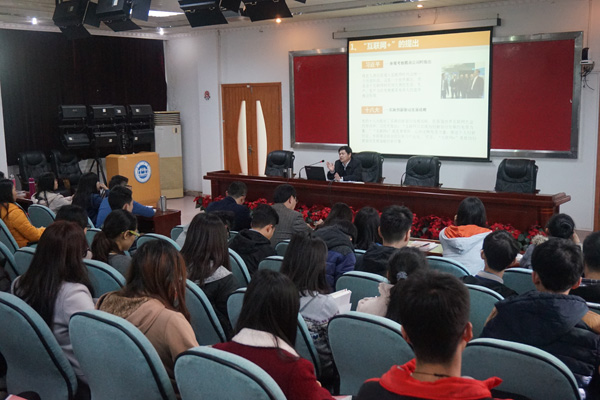 曾桓松授课的内容是《“互联网+”推动创新驱动》。他围绕“互联网+”的提出、“互联网+”的阐释、“互联网+”的共识及“互联网+”的实践等四个方面内容,全面讲解了“互联网+”这一新的模式对人们现代生活的影响。讲座中,他引用诸多数据和事例指出,互联网在经济发展和社会生活中的基础性作用非常重要,跨界、融合、变革、创新、新形态已经成为“互联网+”的关键词。他还通过视频《支付宝全新支付方式kungfu》生动地阐释了跨界融合的意义,认为“互联网+”已经成为产业转型升级和融合创新的重要平台,能够推动产业生态共赢。他鼓励同学们紧随“互联网+”时代,利用互联网的技术手段和思维,提升创新能力,为社会实体经济的转型、增值和提效作出贡献,让“互联网+”成为推动创新驱动新引擎。