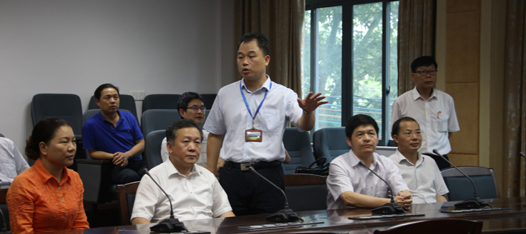 本网讯 8月10日,省教育厅党组书记、厅长景李虎一行到我校调研,就我市中小学教育及我校省市共建和教师培训工作展开座谈。副市长陈宣群,我校党委书记曾桓松、党委副书记叶峥嵘、副校长林俊睦,市教育局长彭银祥等陪同调研。