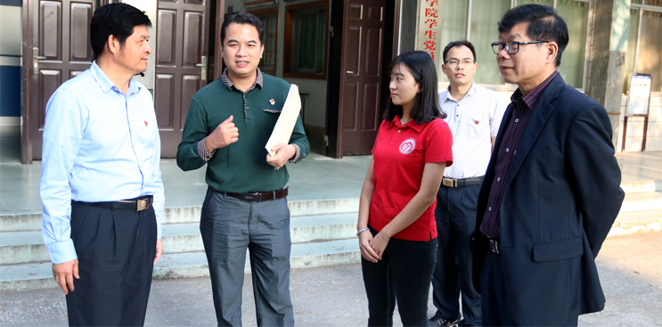 本网讯 10月23日,市委基层党建提升年活动办公室综合秘书组组长刘万良一行到我校检查基层党建示范点创建工作情况,对我校广东省西江流域柑橘产业协同创新中心党支部创建市级基层党建示范点给予具体指导。校党委书记曾桓松、党委副书记叶峥嵘陪同检查,校党委委员、组织部部长欧洪湛参加。