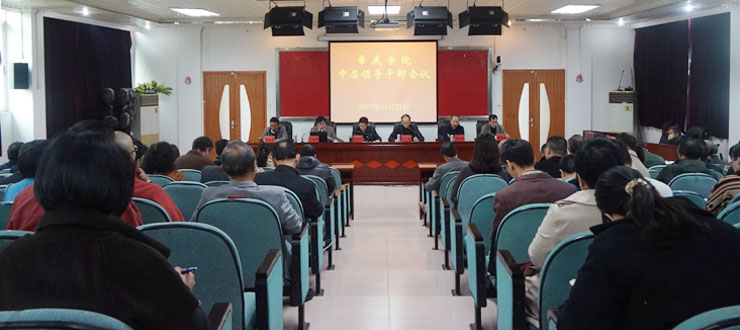 曾桓松强调,学校的中层领导干部是落实和推动学校改革发展稳定的重要力量,在学习贯彻党的十九大精神上肩负重大责任,要把学习贯彻党的十九大精神作为政治必修课,努力在准确掌握十九大精神的思想精髓、核心要义上有新提升,在树牢“四个意识”、坚定“四个自信”上有新提升,在增强解决问题、推动发展的能力上有新提升。曾桓松就学习提出四点意见,一要学懂、弄通、做实党的十九大精神。二要突出重点,抓住关键,着力领会好十九大的理论精髓和核心要义。三要坚持统筹推进、分类指导,全员覆盖,持续深入抓好党的十九大精神的学习宣传贯彻。四要以十九大对高等教育提出的新任务新要求为指针,指导实践、推动工作。曾桓松希望全体干部严格守纪,加强党性,以良好的精神面貌,联系实际的作风,达到预期的学习目标,把十九大精神作为推动学校事业发展的强大思想动力,把学习成果转为推动学校改革发展的生动实践,全力以赴,同心同德,不断开创学校事业发展新局面。