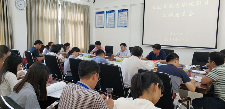 本网讯 近日,我校召开二级学院专职组织员工作座谈会。校党委书记曾桓松出席会议并讲话,全体二级学院专职组织员参加了座谈会。座谈会由党委委员、组织部部长欧洪湛主持。