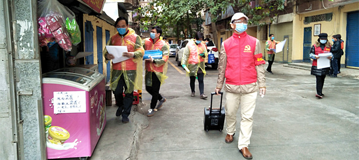 当天下午,我校突击队员率先来到端州区跃龙社区,汇同该社区疫情防控工作人员一起深入居民区进行疫情排查。在听取端州区委有关领导关于社区防疫工作的布置和工作要求之后,行动随即开始。