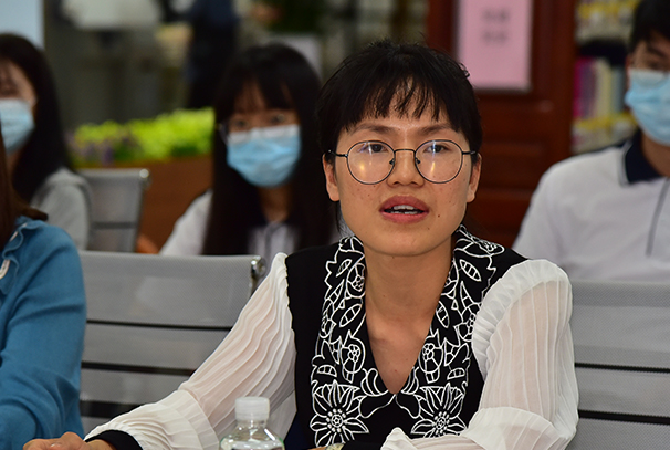 杨衍江首先向在座师生介绍了图书馆“百年党史”学习园地的建设情况。他表示,“百年党史”学习园地的建设与学校的大力支持和悉心指导息息相关,经过场地布置、书架搭建与书籍挑选,目前学习园地已经初步建设完毕,对学校师生开放。