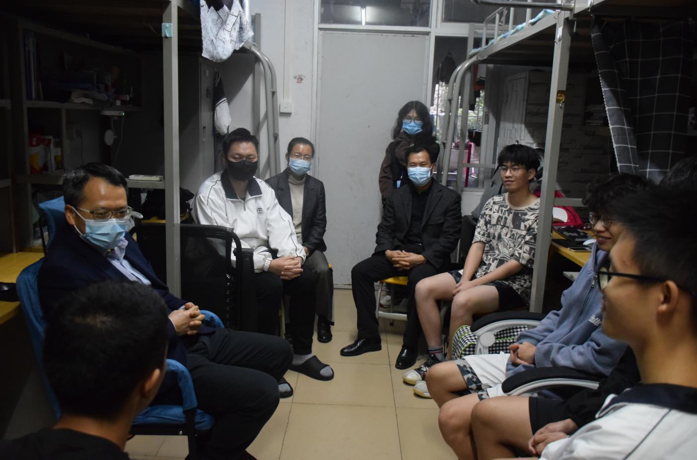 胡文涛与经管学子亲切交流,详细了解学生在学校实施封闭管理以来的学习、生活和心理等方面的情况,询问存在的问题和困难,用温情融解焦虑,用鼓励振奋人心。