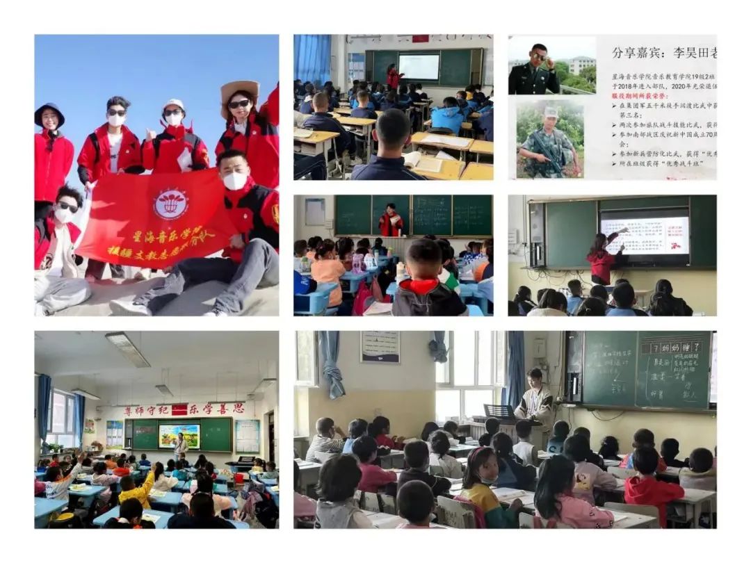 星海音乐学院派出9名同学主要负责受援学校的音乐学科,并兼顾学校其他教学工作。同学们积极吸收融合当地学校的民族特色,开展形式多样的音乐文化交流活动,深度参与校园社团文化建设,大力开展国乐社团活动和国家通用语言文字普及活动,积极举办诗歌朗诵大会、广东与新疆学校的诗词大会等。