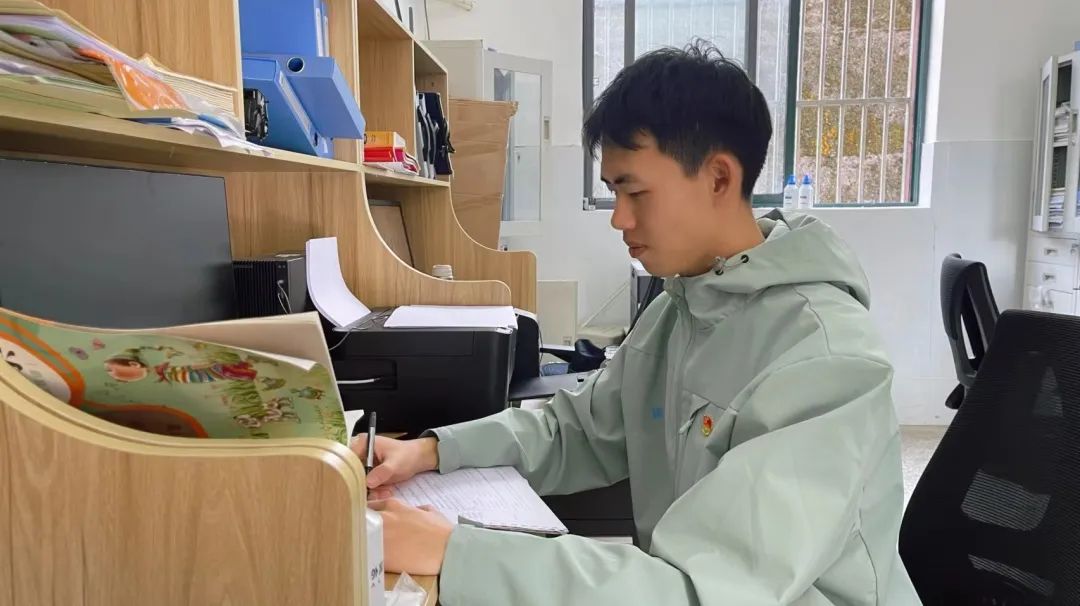 队员罗宇翔在墨脱县背崩乡小学办公室备课