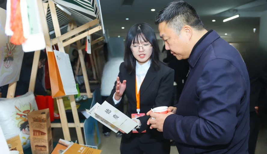 我校“绘文融旅——文旅融合助力德庆乡村振兴”项目受邀参加品牌项目集市,团省委书记冉波到展位前听项目组成员详细介绍,并鼓励团队成员将此项目持续做深做实。