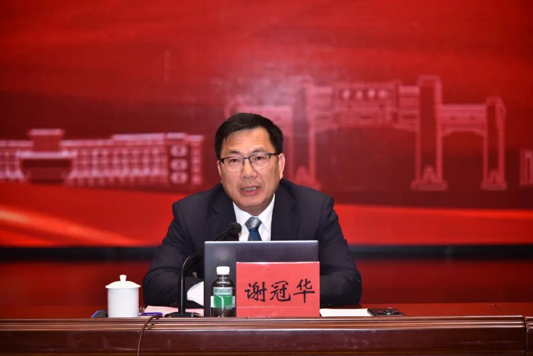 谢冠华强调,要深入实施“五大工程”,重点推进“九项计划”。实施“五大工程”,就是要实施“党建引领工程”,推动组织力新提升;实施“时代新人培育工程”,构建思政工作新体系;实施“文化育人工程”,增创人才培养新优势;实施“干部能力提升工程”,强化干事创业新动能;实施“校园安全守护工程”,构筑事业发展新基石。推进“九项计划”,就是要着力创新人才培养体系,实施拔尖人才培养计划;着力提升学科实力,实施学科攀峰计划 ;着力推进强师工程战略,实施人才引育百人计划;着力推进有组织科研,实施科研倍增计划;着力推进新时代教育对外开放,实施交流合作拓展计划;着力推进双百行动,实施助力百千万教育行动计划;着力推进新校区建设,实施校区功能提升计划;着力推进教育数字化战略,实施数字赋能行动计划;着力推进考核评价体系与激励机制改革,实施动力提升行动计划。