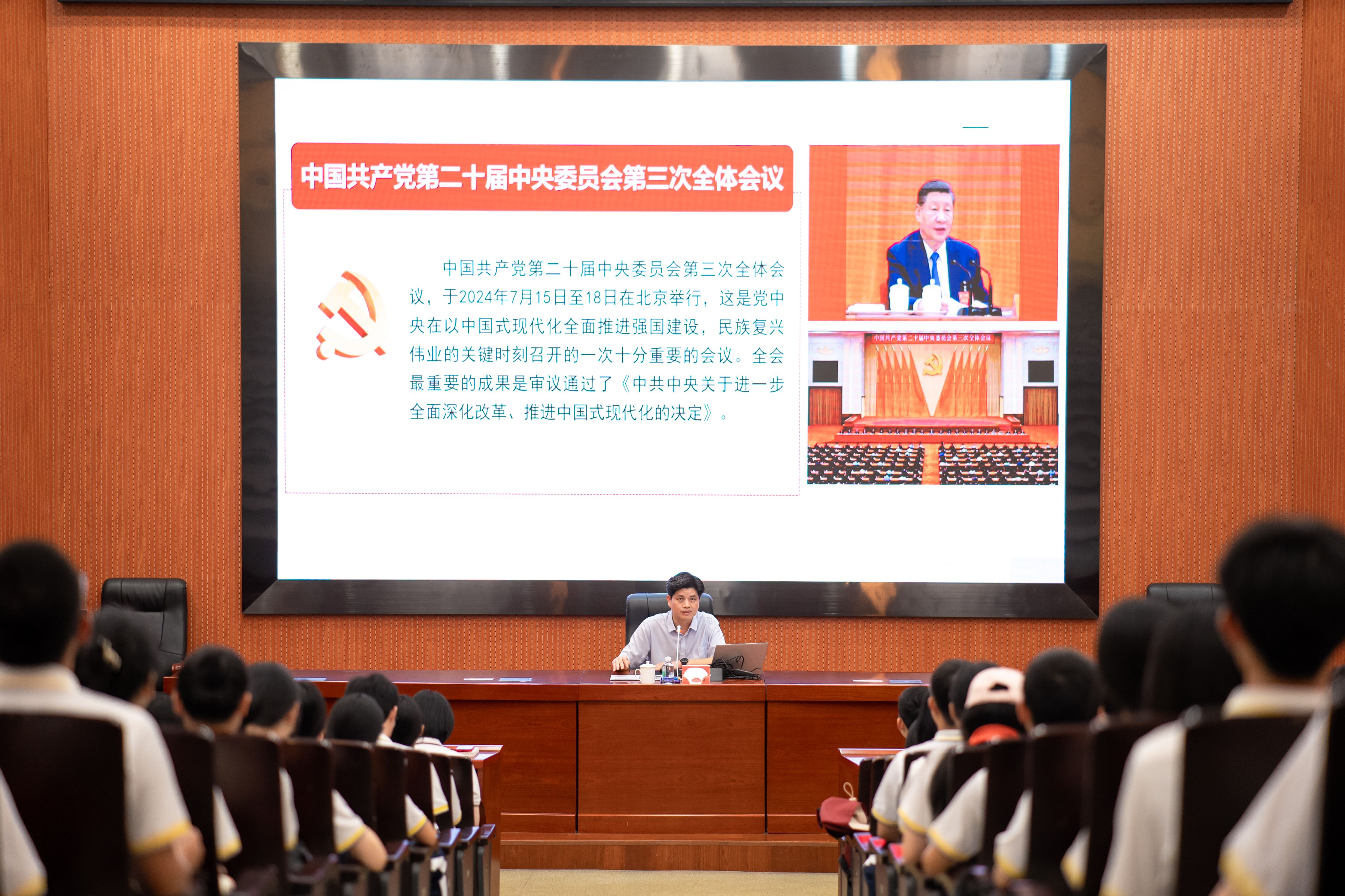 课上,欧洪湛对党的二十届三中全会精神进行系统解读。要求团学骨干要准确把握《中共中央关于进一步全面深化改革、推进中国式现代化的决定》精神,坚定不移听党话、跟党走,立志做有理想、敢担当、能吃苦、肯奋斗的新时代好青年,在新时代新征程上彰显青春风采,贡献青春力量。