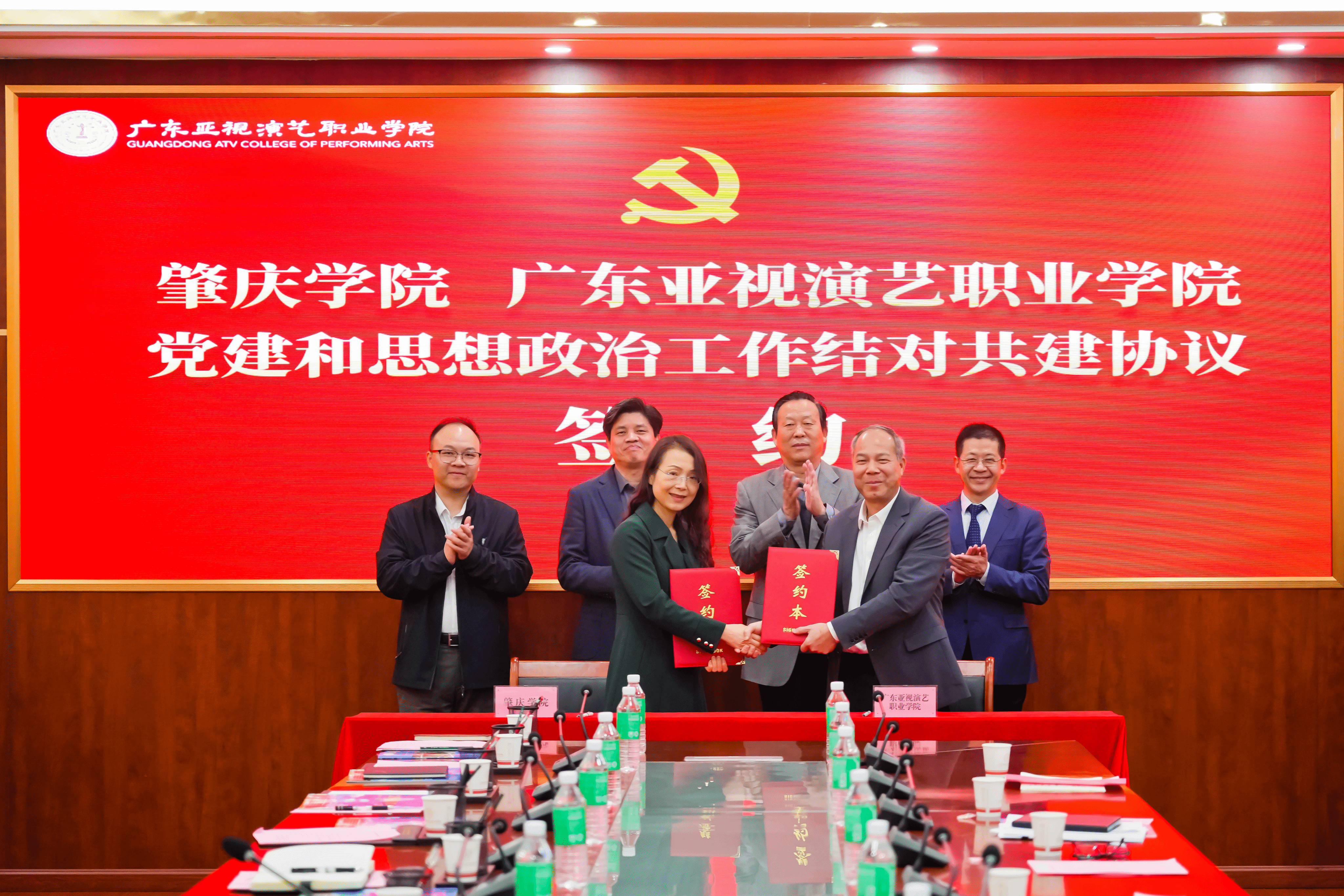 本网讯 12月19日,校党委副书记、校长李琴率队前往广东亚视演艺职业学院,共同签订党建和思想政治工作结对共建协议。校党委副书记、组织部部长欧洪湛,党委委员、宣传统战部部长、党政办公室主任陈前,广东亚视演艺职业学院党委书记谭冠中,党委副书记、校长丁孝智,党委副书记、宣传部部长薛桂荣出席,组织部、宣传统战部、发展规划部等相关职能部门负责人及结对共建工作小组相关工作人员参加。李琴出席会议并讲话,丁孝智主持会议。