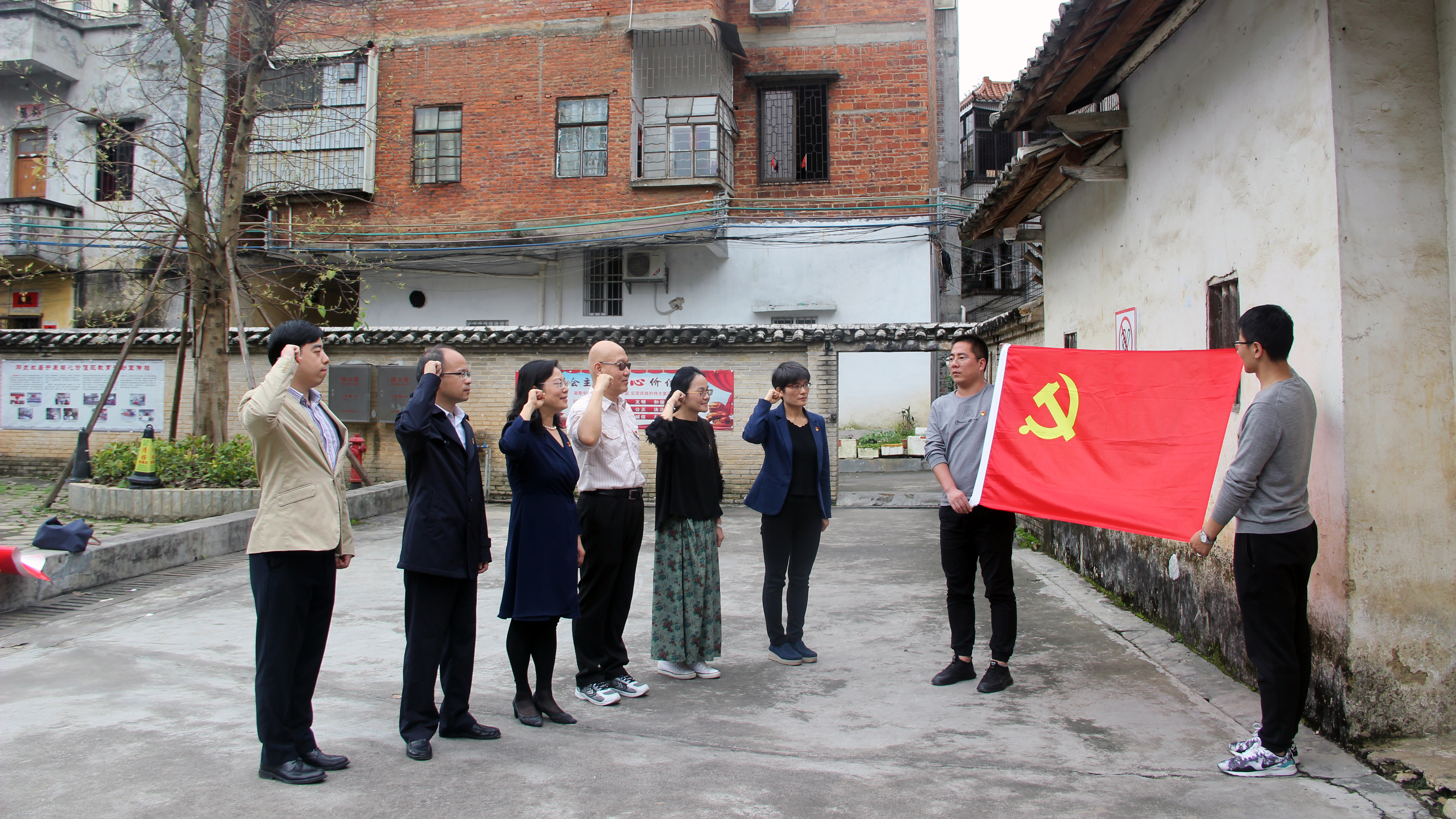 随后,教工党员在邓发故居前,面对鲜红的党旗,举起右手,紧握拳头,重温入党誓词。铿锵有力的宣誓声,提醒大家时刻铭记党性,不忘初心,永远跟党走。