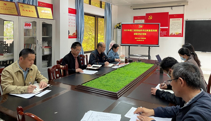 本网讯 3月1日,数学院党委召开党支部书记述职评议考核会议。会议由学院党委书记杨帆主持,院长朱智伟、副书记高洁云及各支部书记参加了会议。