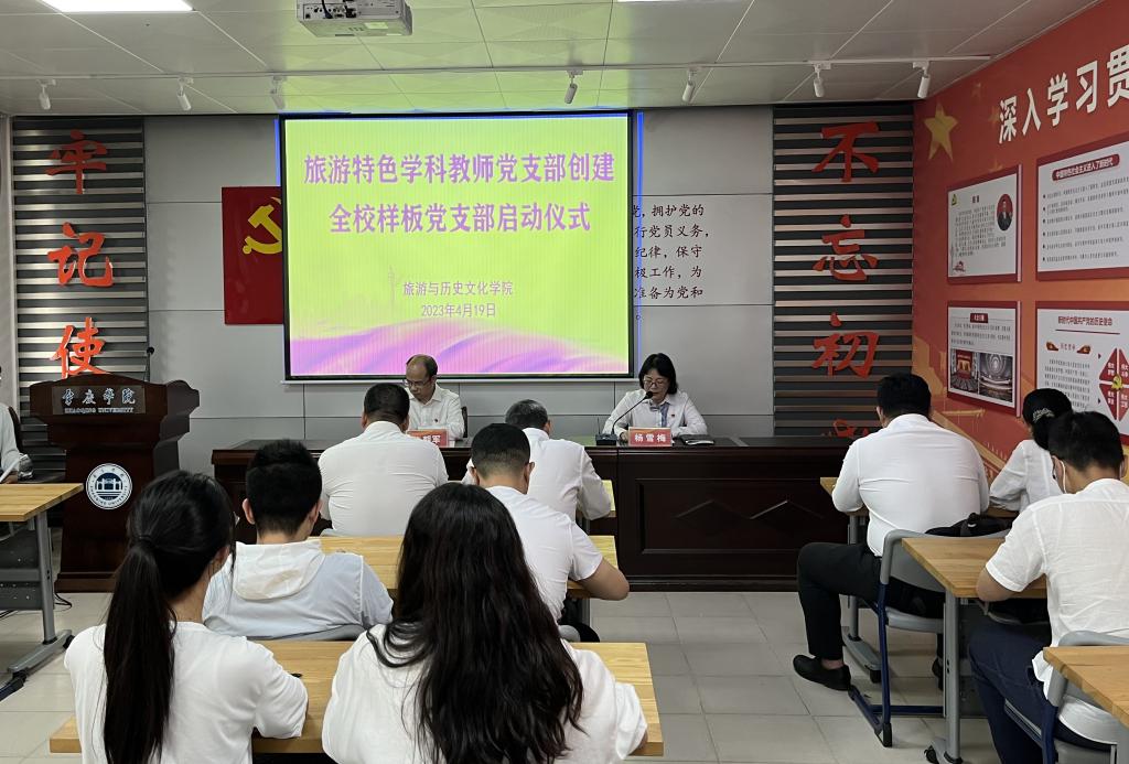本网讯 近日,旅游与历史文化学院在初心堂举行全校党建工作样板支部建设启动仪式,李朝军院长、杨雪梅书记、周军副院长以及旅游特色学科教师党支部全体党员参加。