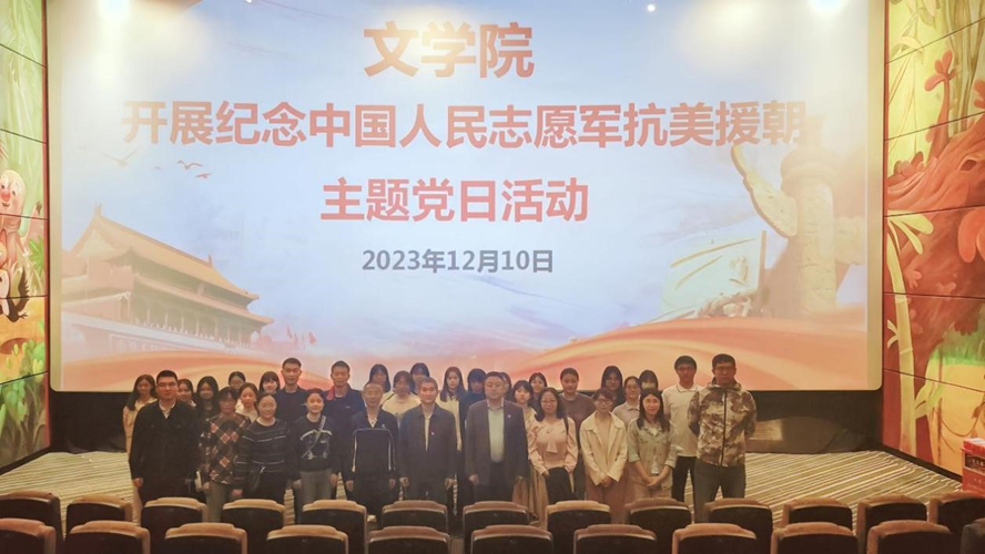 本网讯 为不断增强师生党员思想教育和价值引领,引导师生从百年党史中汲取力量、坚定信念,12月10日,文学院组织师生党员共47人观看电影《志愿军:雄兵出击》,开展纪念中国人民志愿军抗美援朝主题党日活动。