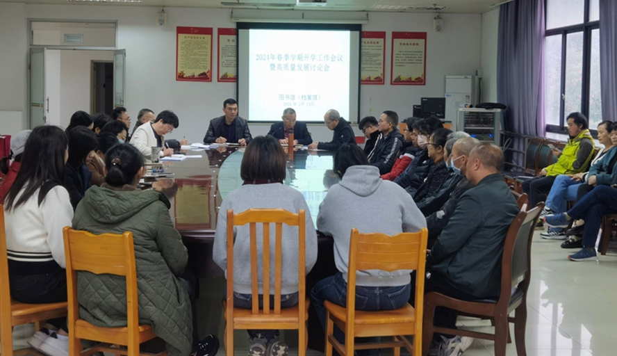 本网讯 2月23日,图书馆(档案馆)召开2024年新学期工作会议暨高质量发展讨论会。馆长班荣鼎在主持会议中强调,图书馆(档案馆)要推动书香校园建设,充挥发挥文化育人功能,努力建设成为学校的文化标杆。党总支书记黄镜辉指出,全馆要统一思想、凝心聚力,打造党建育人品牌,秉承传承文明、服务师生的宗旨,助力学校高质量发展。