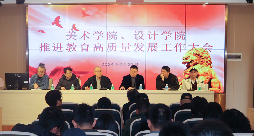 本网讯 2月23日,美术学院、设计学院组织召开推进教育高质量发展工作大会。院党委书记陈明华出席,院长李小军主持,全体教师参加。