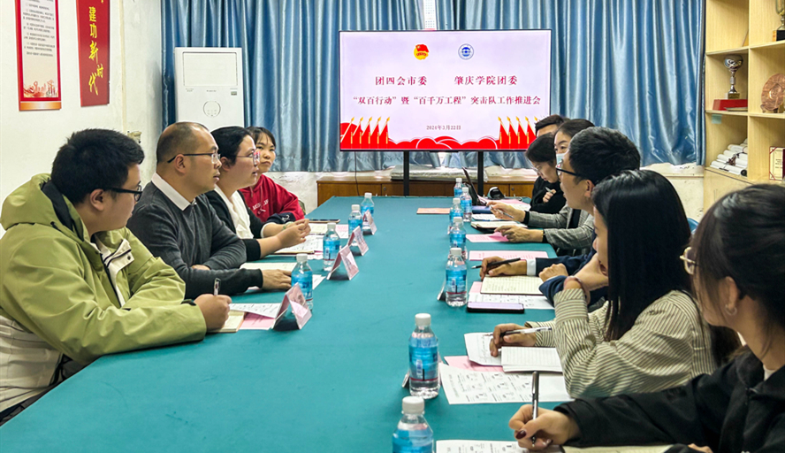 本网讯 3月22日,四会市团委副书记周莹、曾华智一行到我校交流“双百行动”工作进展,着力推动“百千万工程”青年突击队行动提质增效。校团委书记马舒洁率领校团委全体团干、科学技术部工作人员和突击队学生代表参加座谈会。