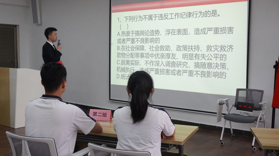 本网讯 6月26日,食品与制药工程学院联合外国语言文化学院和数学与统计学院举办以“学纪 知纪 明纪 守纪”为主题的党纪学习教育知识竞赛。学院的专职组织员和学生党员代表参加了活动。
