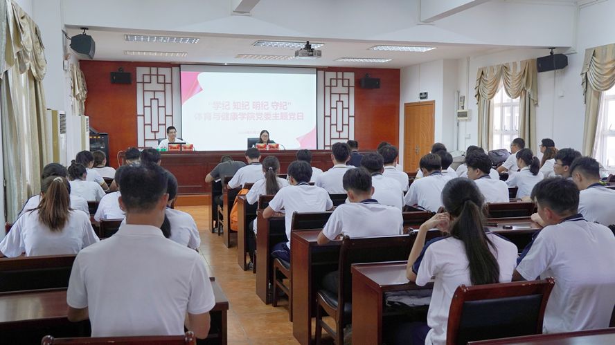 本网讯 6月28日,体育与健康学院党委举办“学纪 知纪 明纪 守纪”主题党日活动,邀请马克思主义学院教师唐伟来校作党纪学习教育宣讲。党委书记梁艳红出席并主持,学院党政班子成员、全体师生党员参加。
