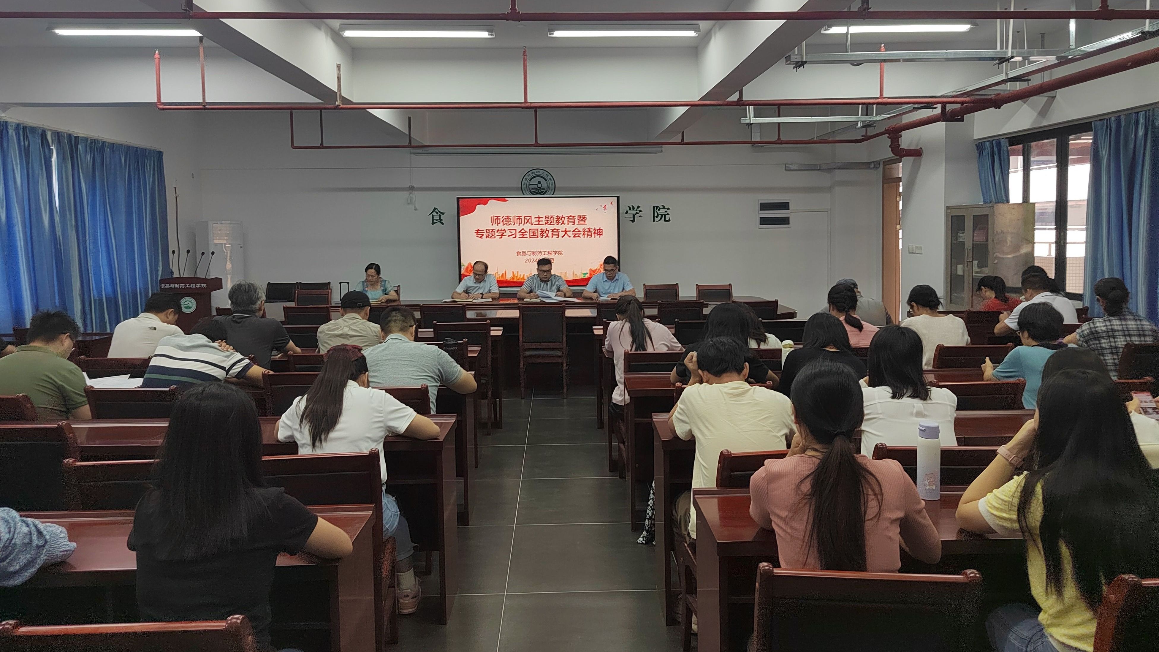 本网讯  10月23日,食药学院召开师德师风主题教育暨专题学习全国教育大会精神会议。学院全体教职工参加会议。
