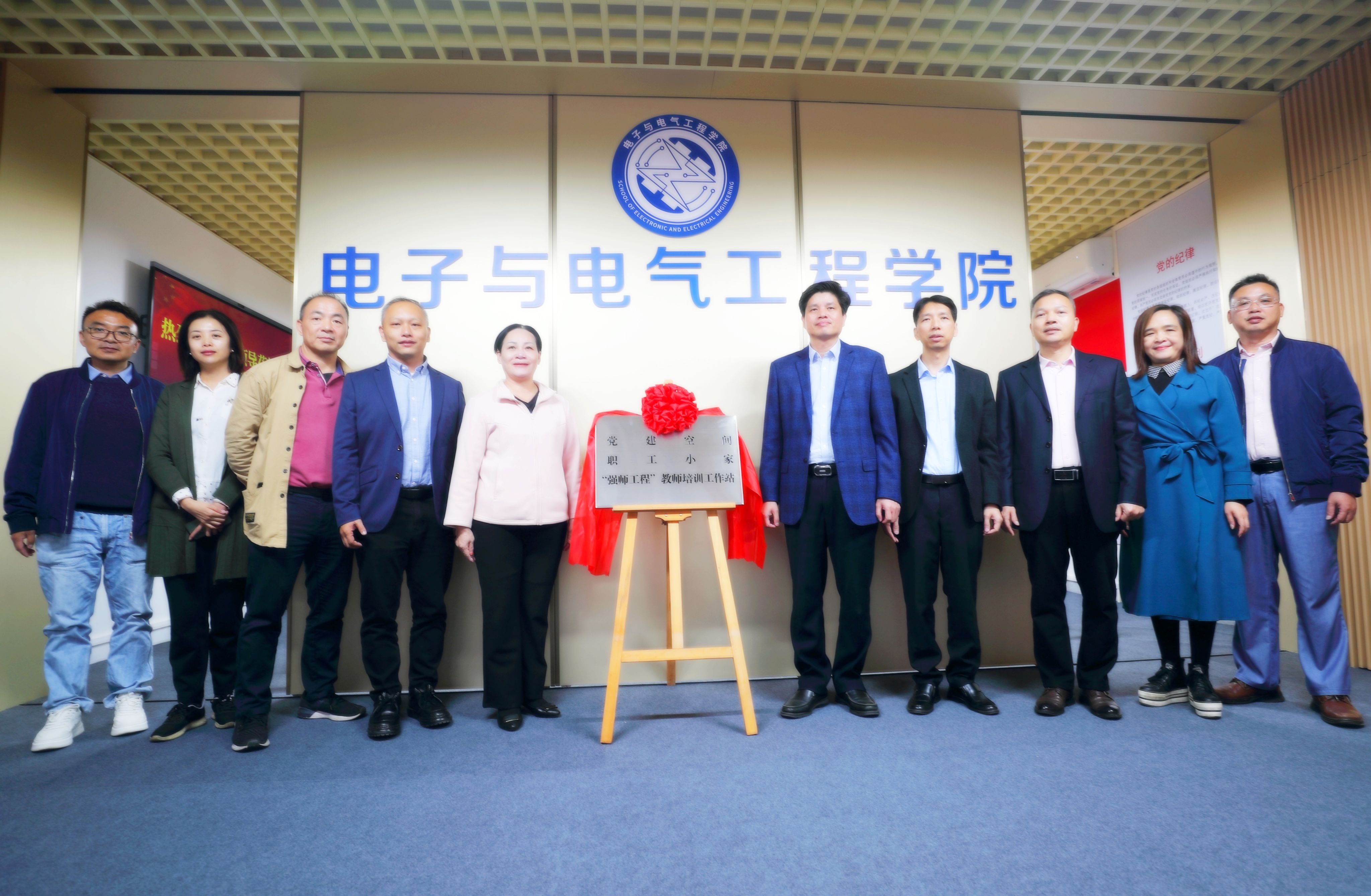 本网讯 11月26日,电子与电气工程学院举行“党建空间”&“职工小家”&“强师工程教师培训工作站”揭牌仪式,学校党委副书记欧洪湛出席并讲话。学校工会、资产设备管理部、总务后勤部、基础建设部、教师教育学院等相关单位负责人参加活动。