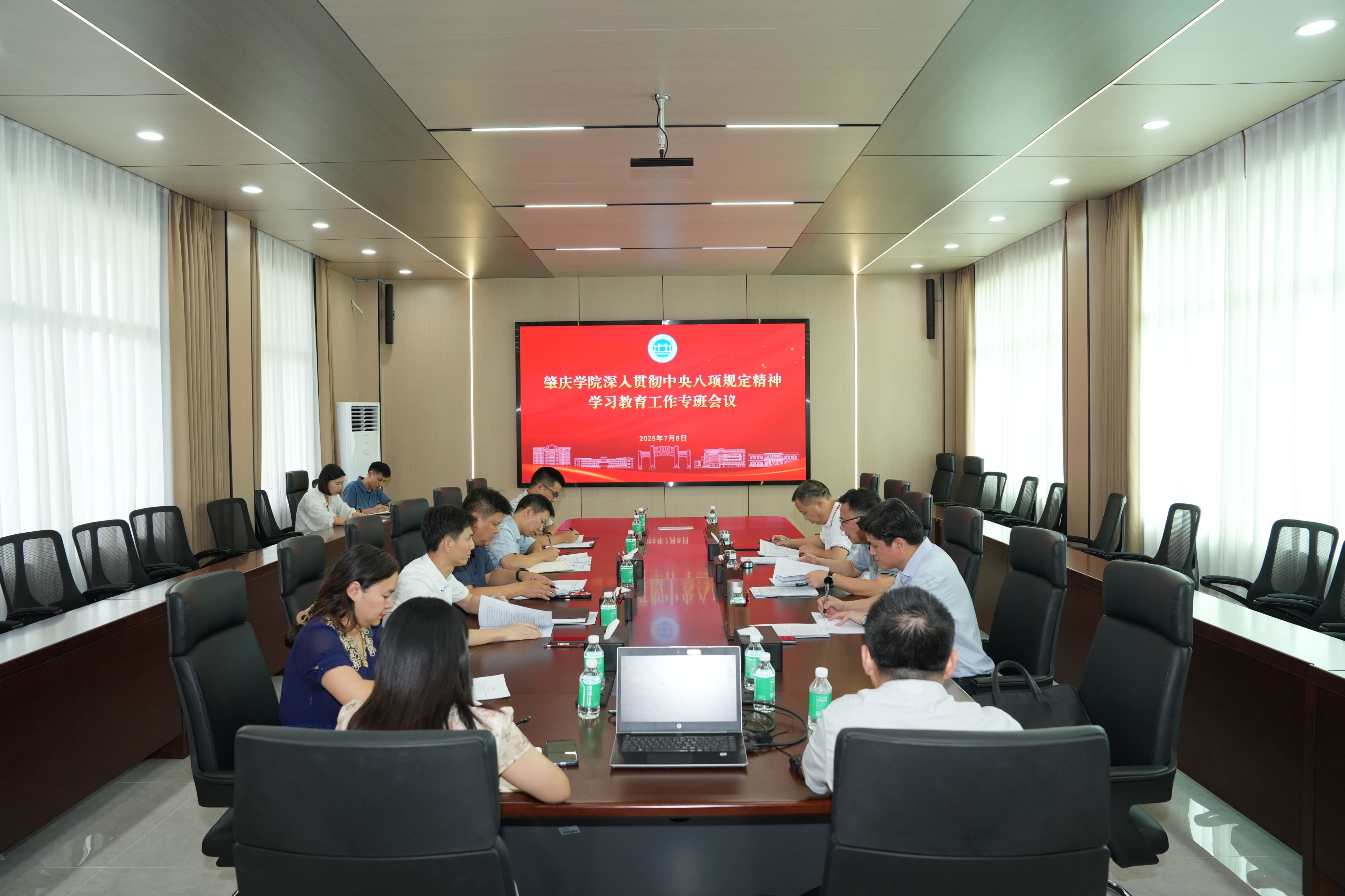 本网讯  7月8日,为进一步推进深入贯彻中央八项规定精神学习教育走深走实,学校党委在行政楼第五会议室召开学校学习教育工作专班会议。党委书记谢冠华,党委副书记、组织部部长欧洪湛,纪委书记、监察专员王克俭出席会议,学习教育工作专班成员参加会议。